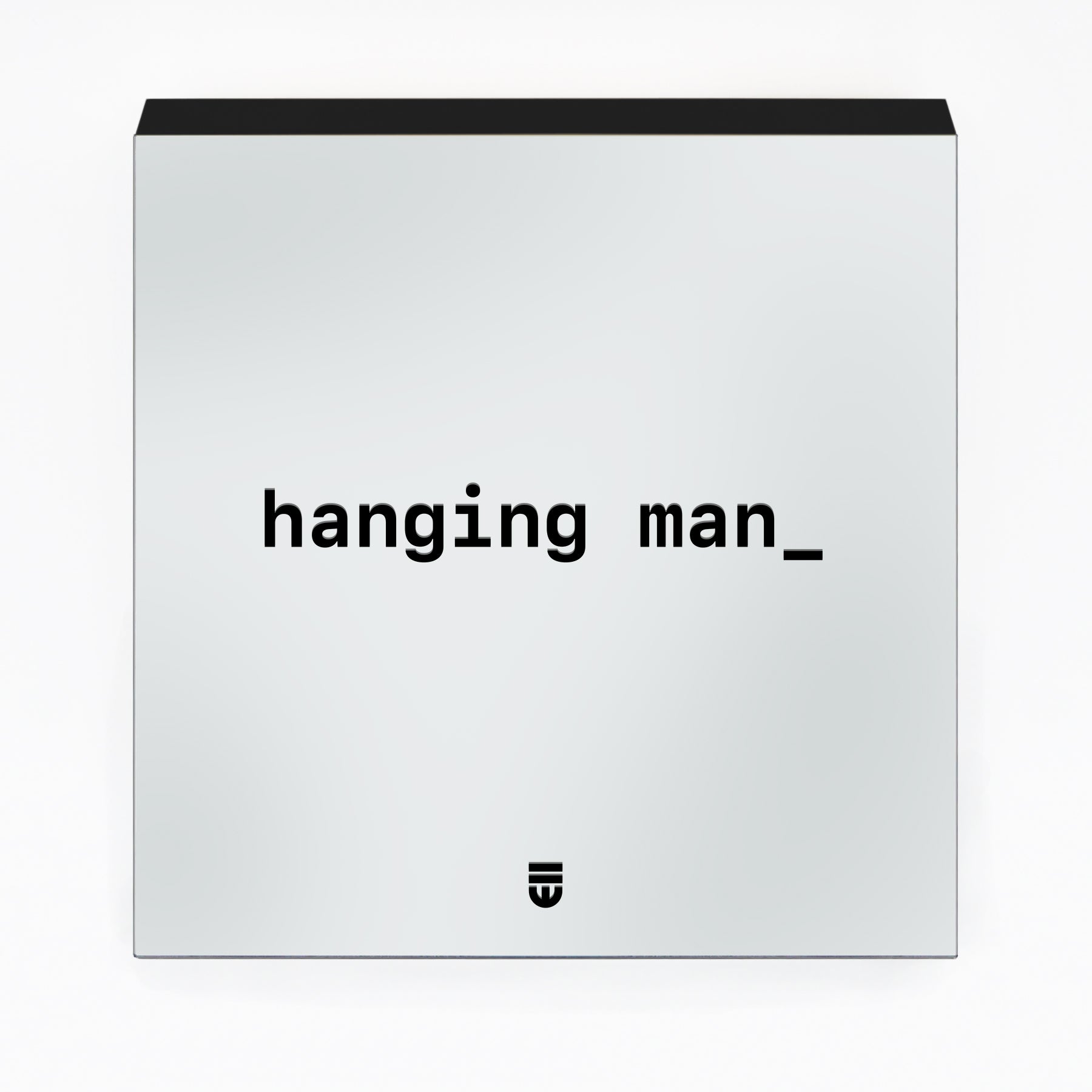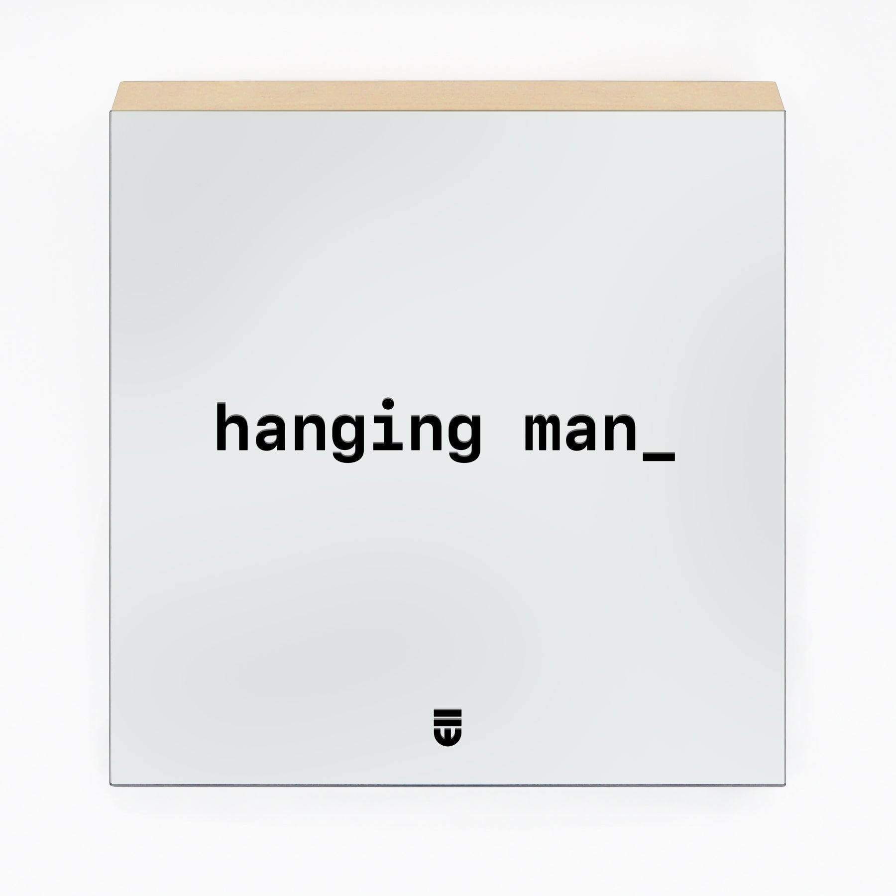 Acrylic and polymer on mirror, mounted on wood panel. Silkscreened using our overprinting technique: multiple layers of paint meticulously applied to create a subtle, tactile depth within the text.