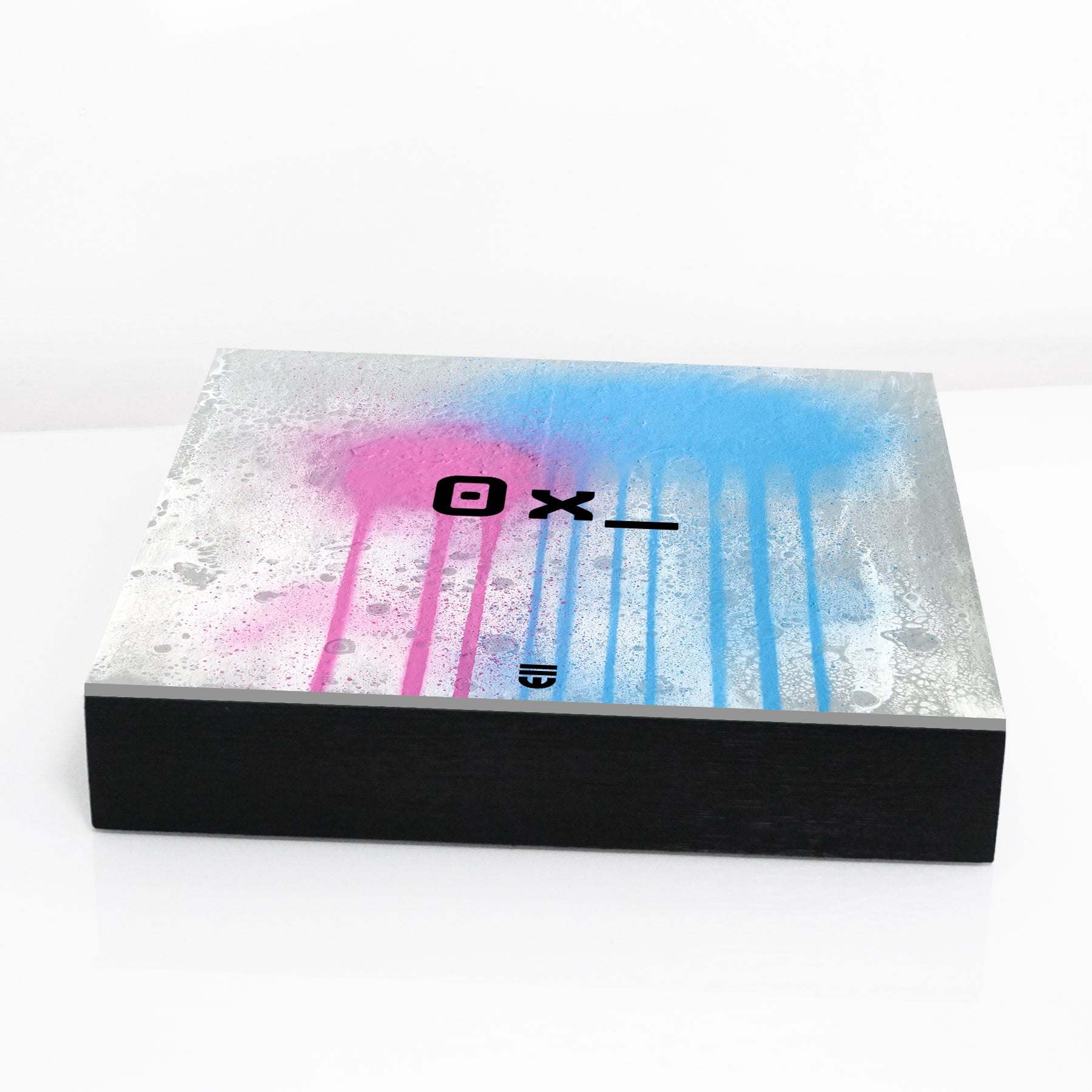 Acrylic, automotive paint, polymer, reactants, flow conditioners and varnish on hardboard, mounted on a wood panel. Executed with airbrush and silkscreen techniques, applied with precision and intention.
