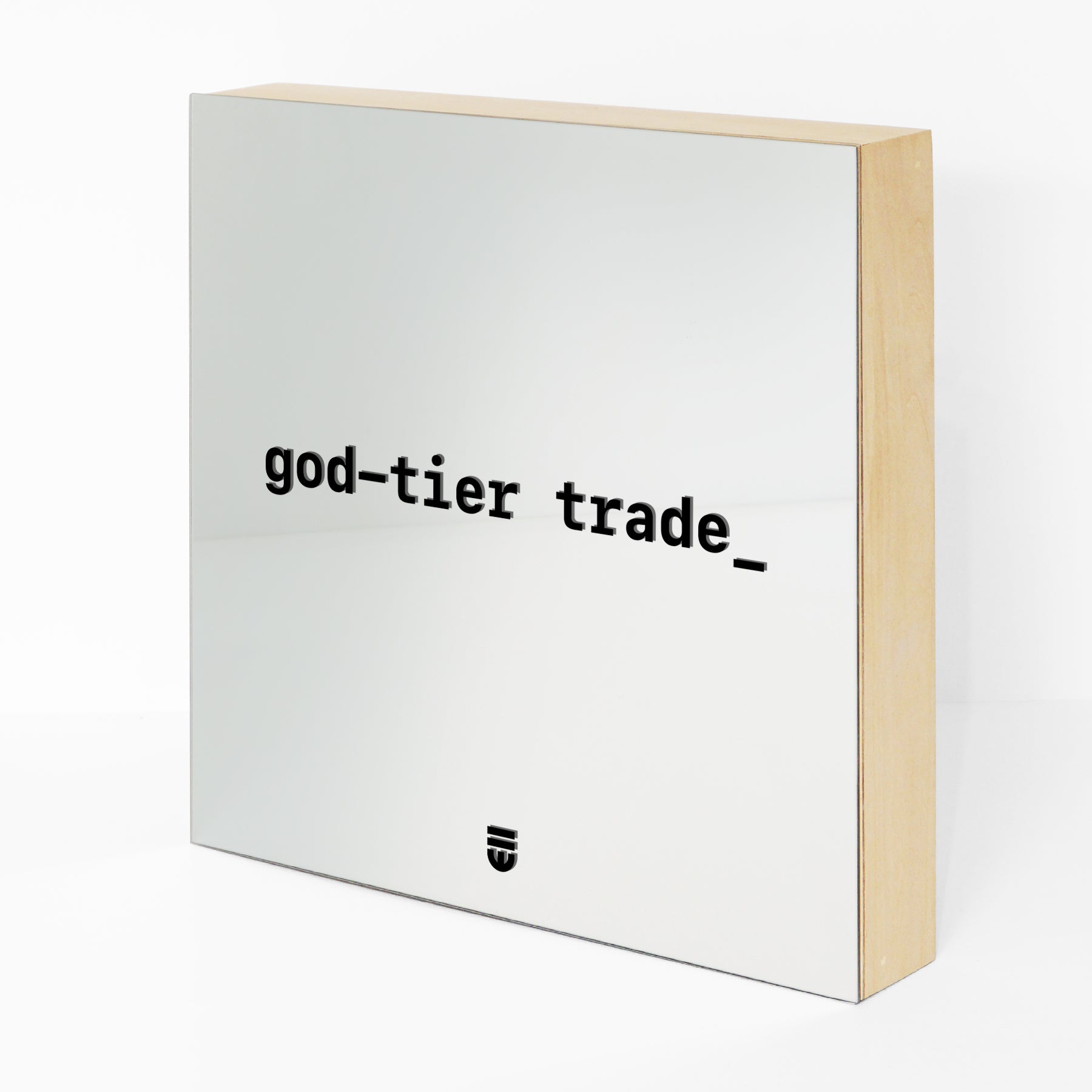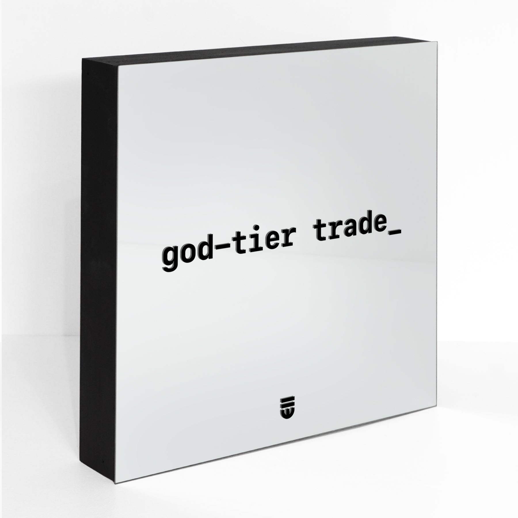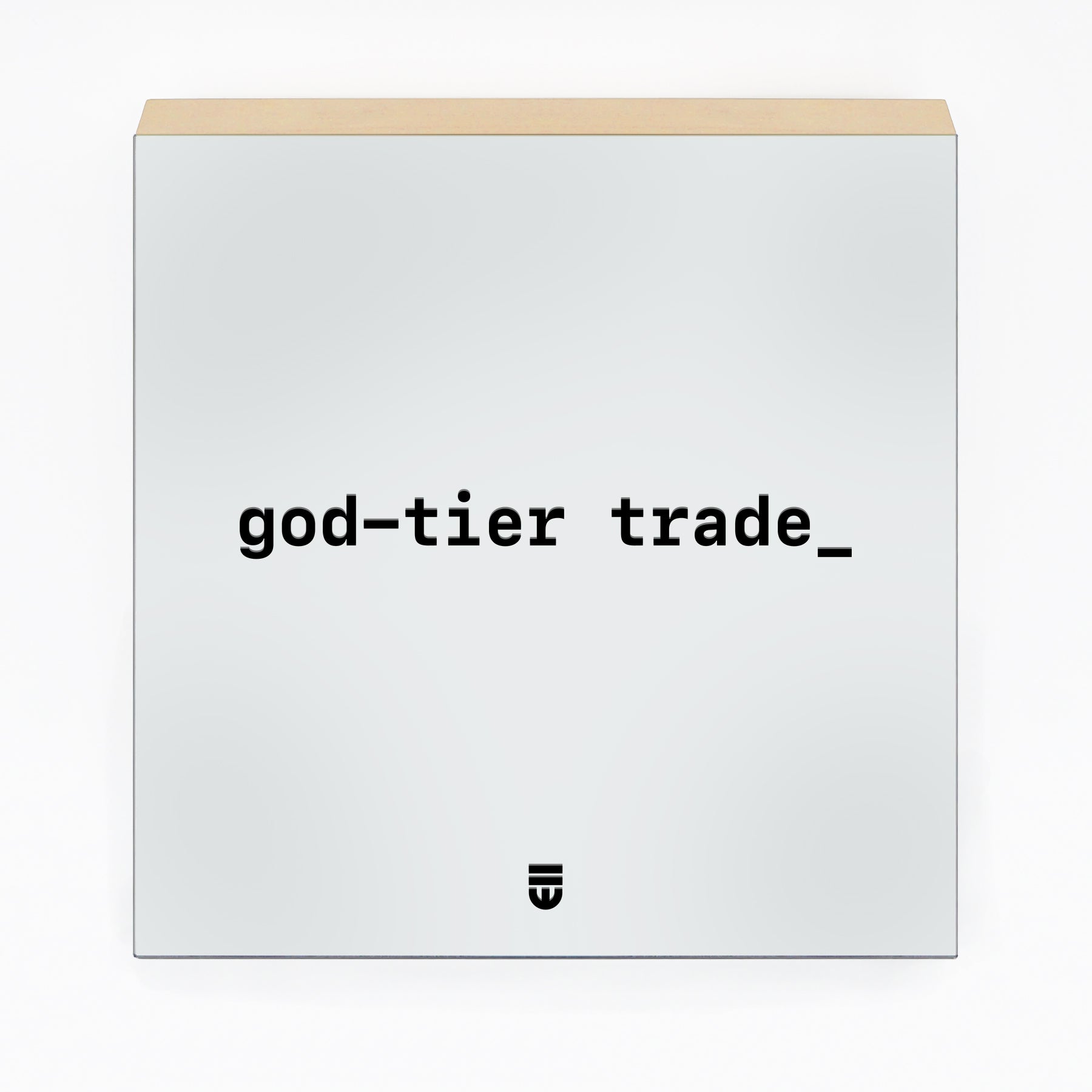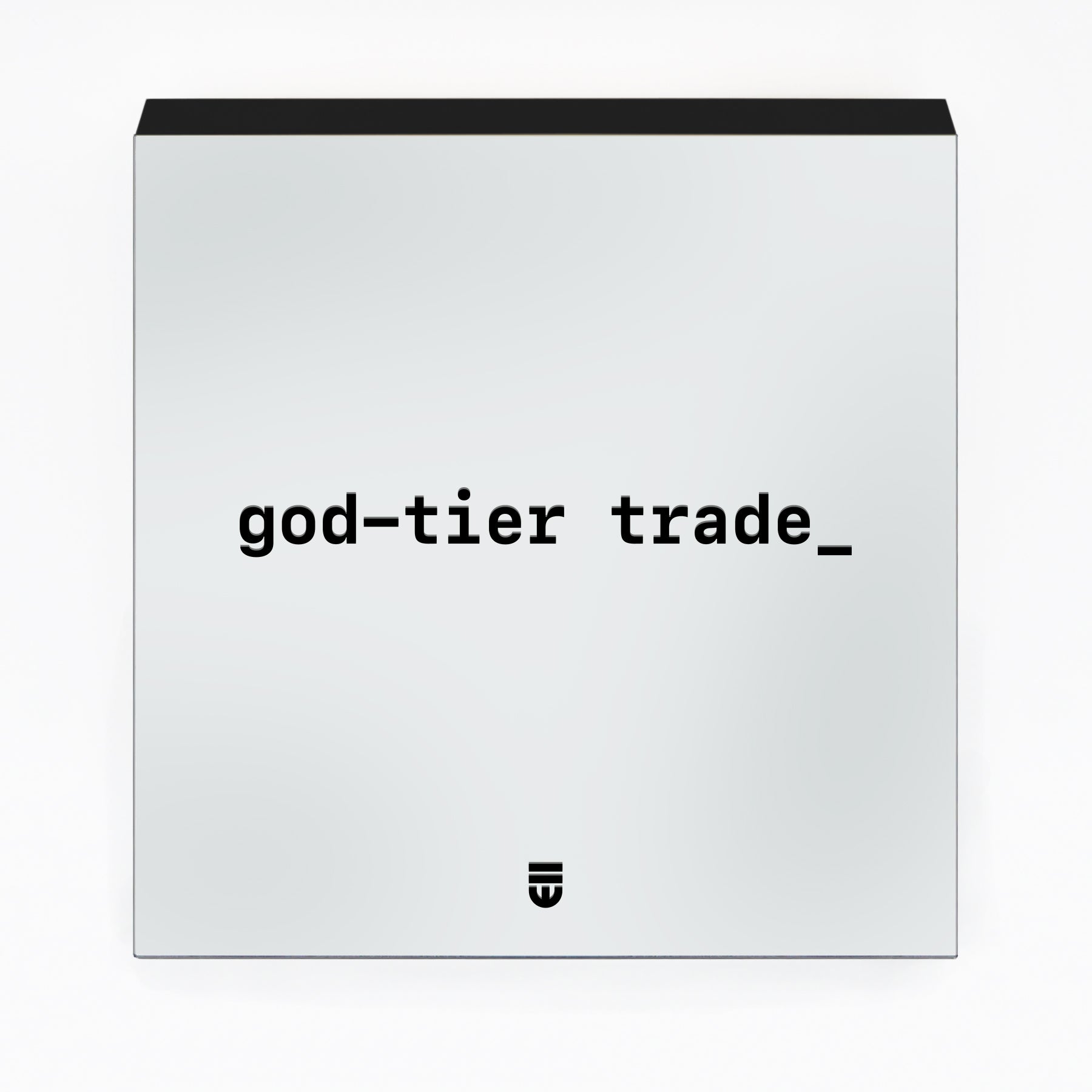 This work centers on that fleeting moment when instinct, timing, and execution merge into legend. In crypto, where alpha is the goal, a god-tier trade surpasses it, bending the market to your will. It is the point where trader and chart dissolve into one — no longer observer and pattern, but a single rhythm in motion. Every candle, wick, and reversal moves as if guided by your own pulse. To become the chart itself is to enter flow, a state where intuition and system briefly converge into perfection.