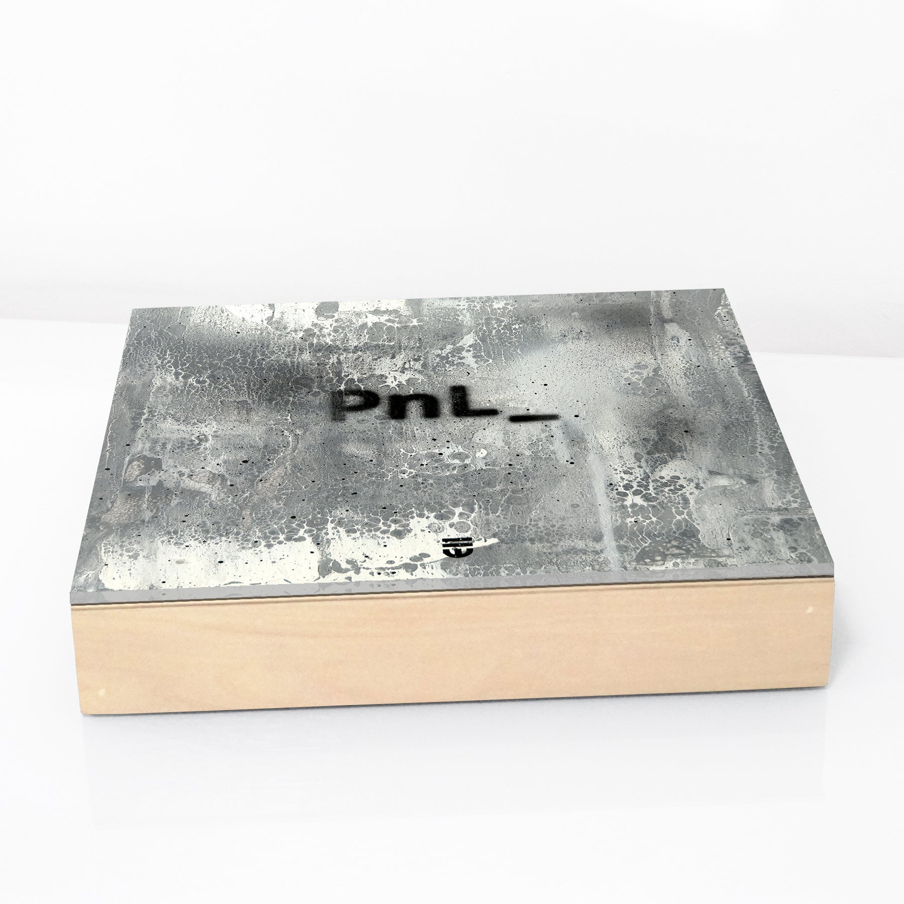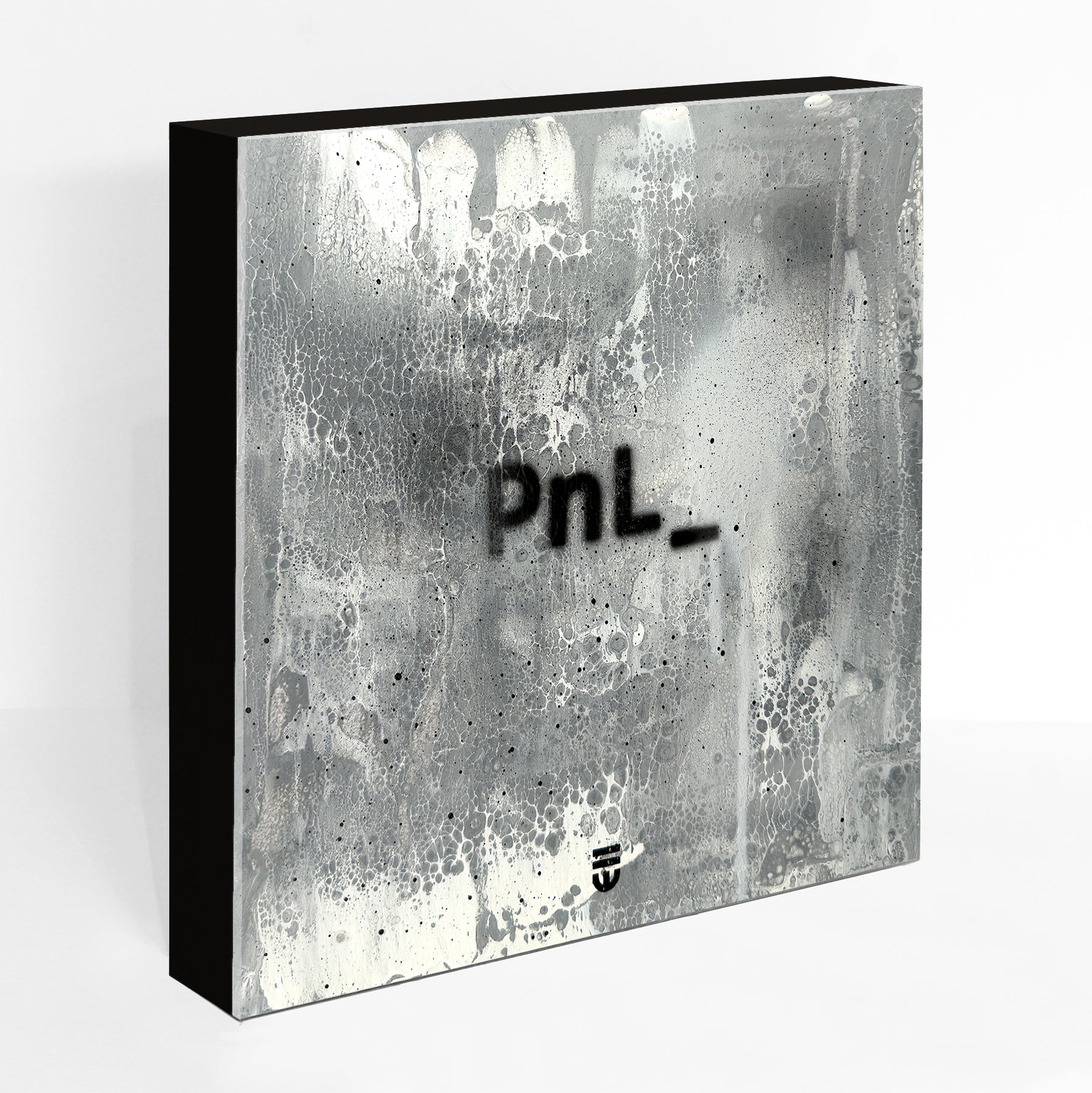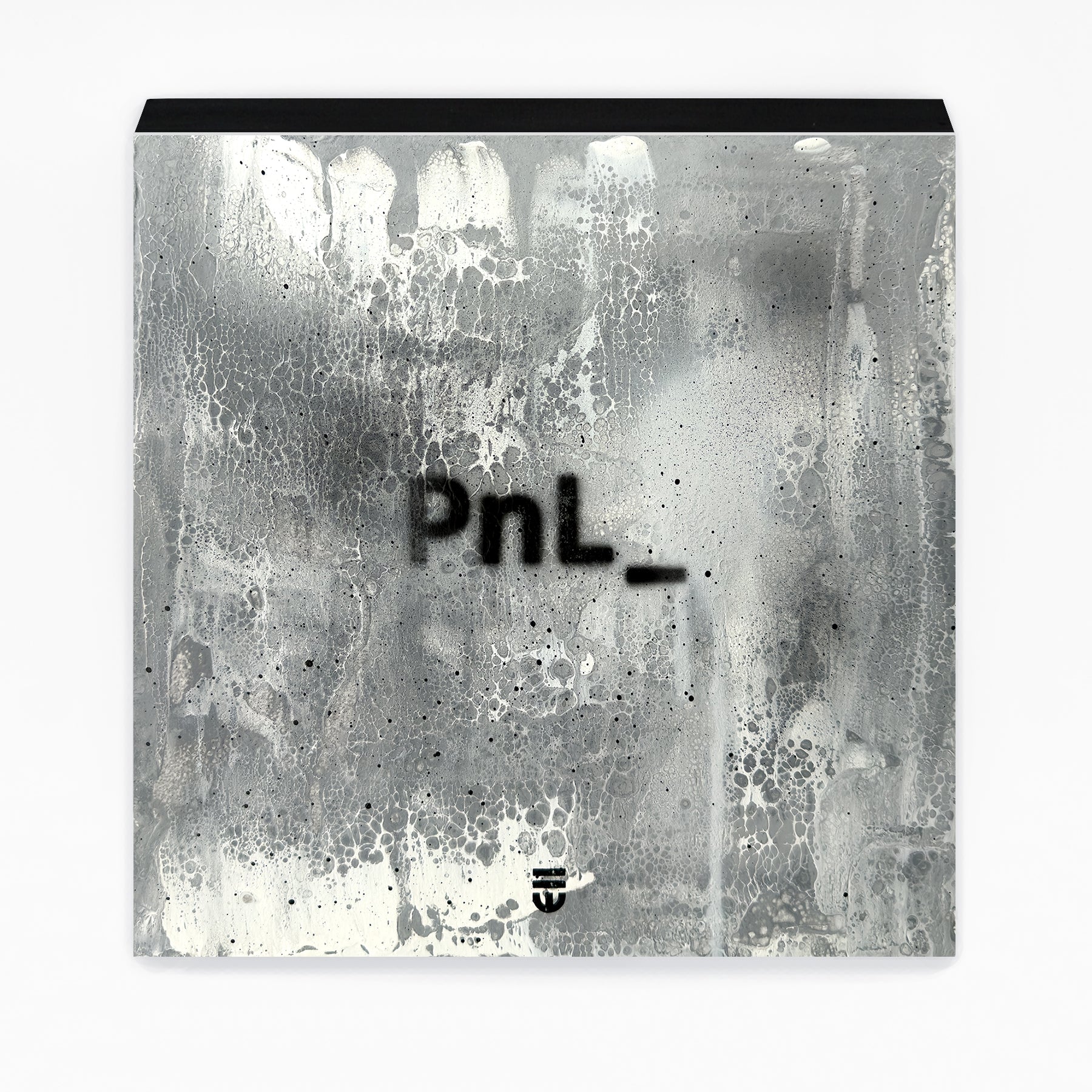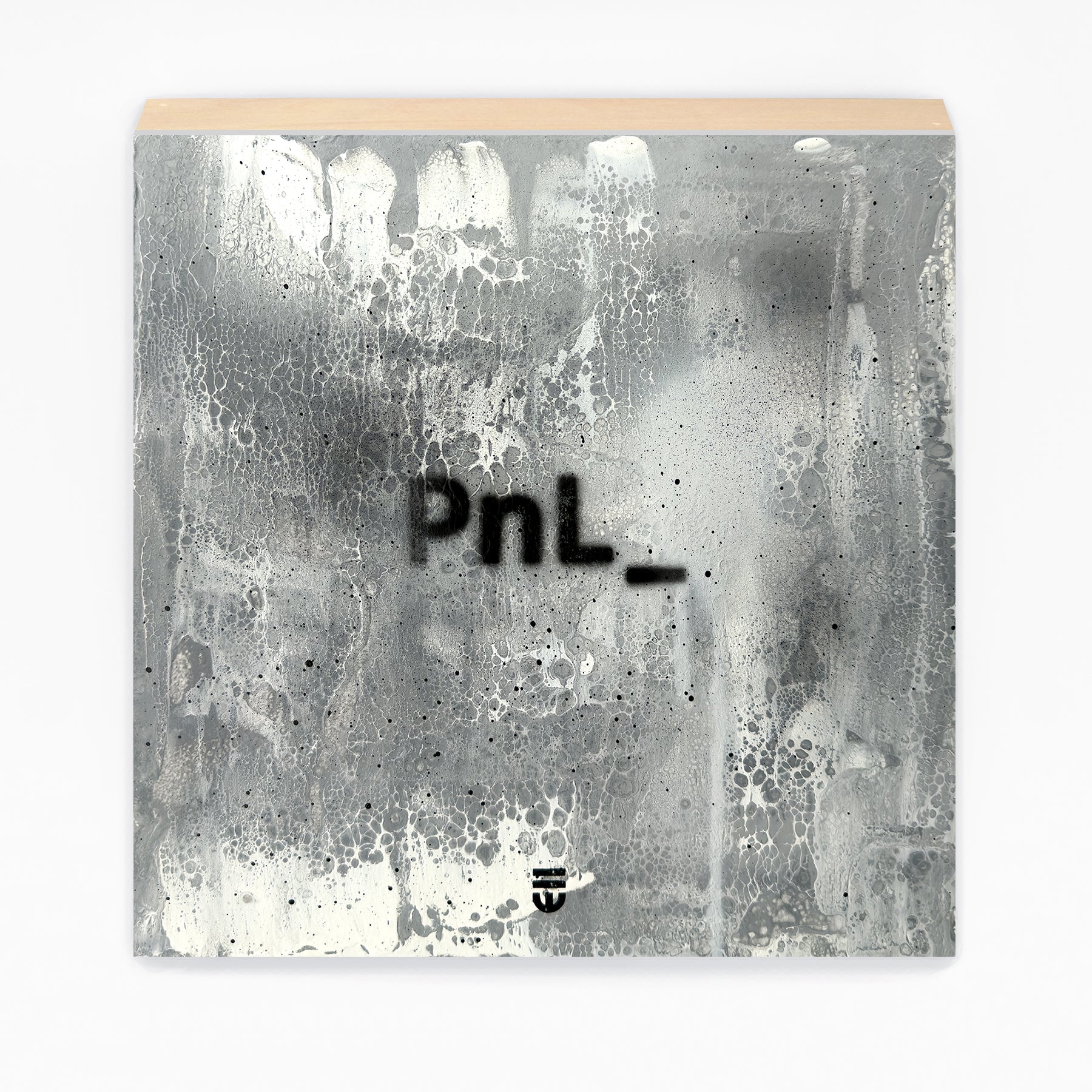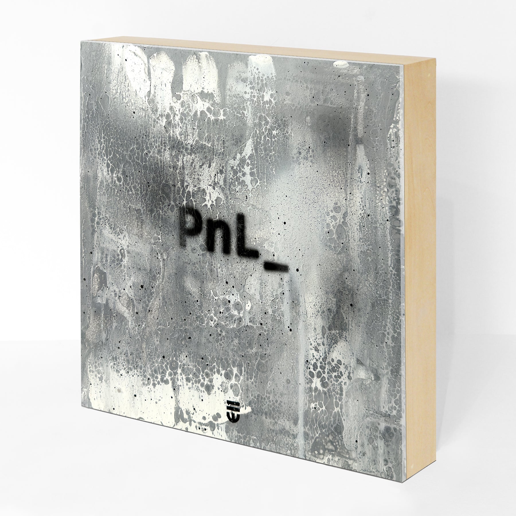 Acrylic, automotive paint, polymer, reactants, flow conditioners and varnish on hardboard, mounted on a wood panel. Executed with airbrush and silkscreen techniques, applied with precision and intention.