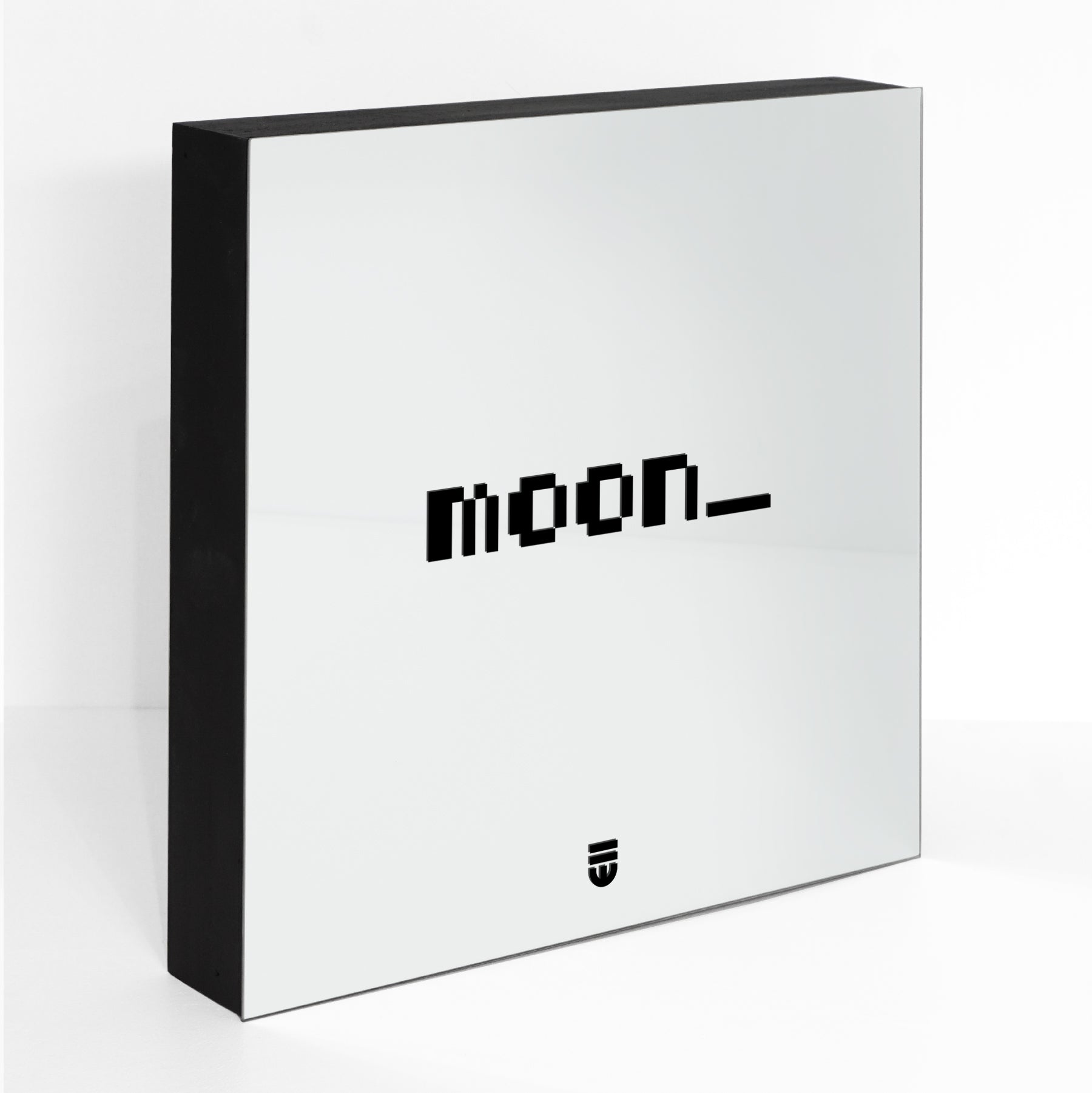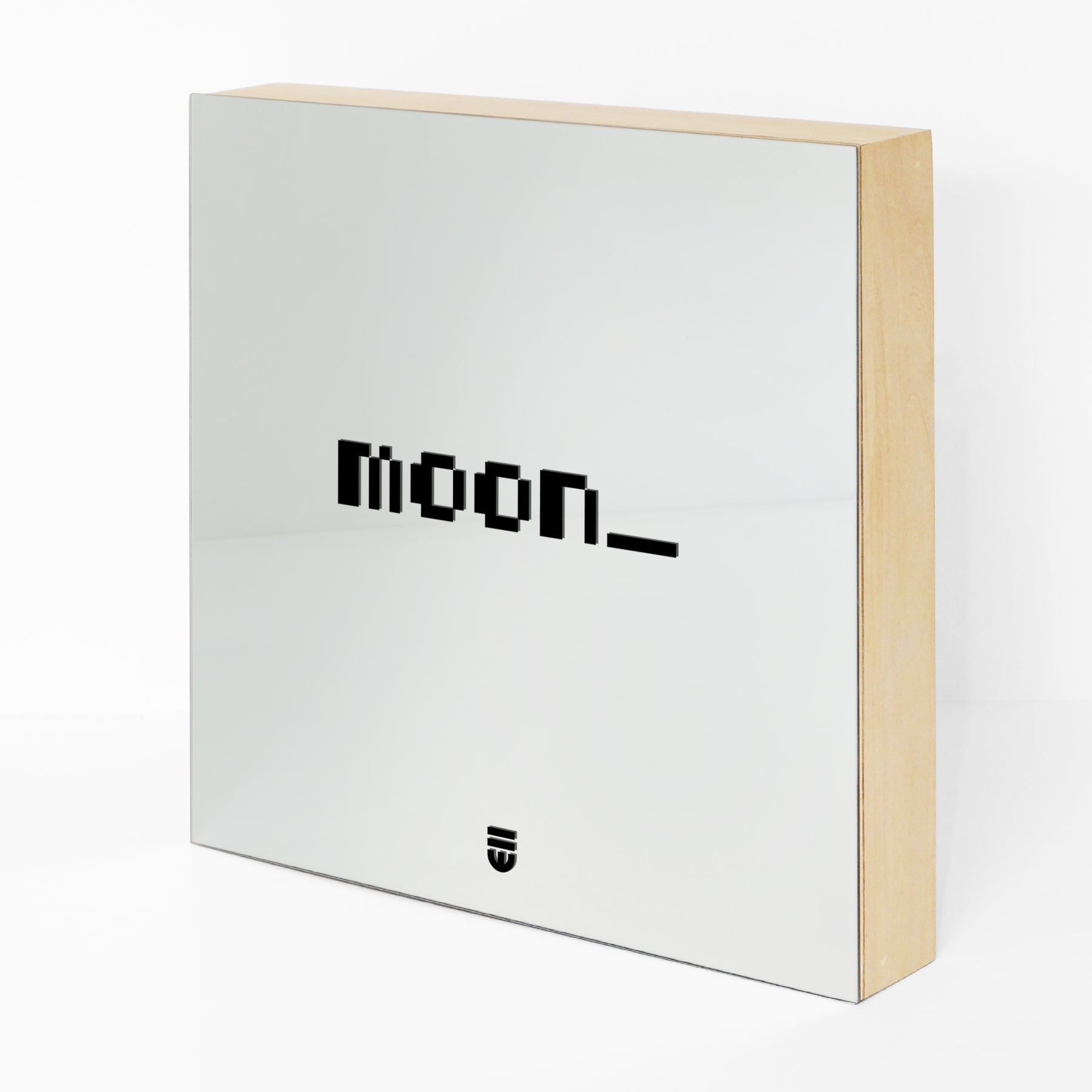 Acrylic and polymer on mirror, mounted on wood panel. Silkscreened using our overprinting technique: multiple layers of paint meticulously applied to create a subtle, tactile depth within the text.