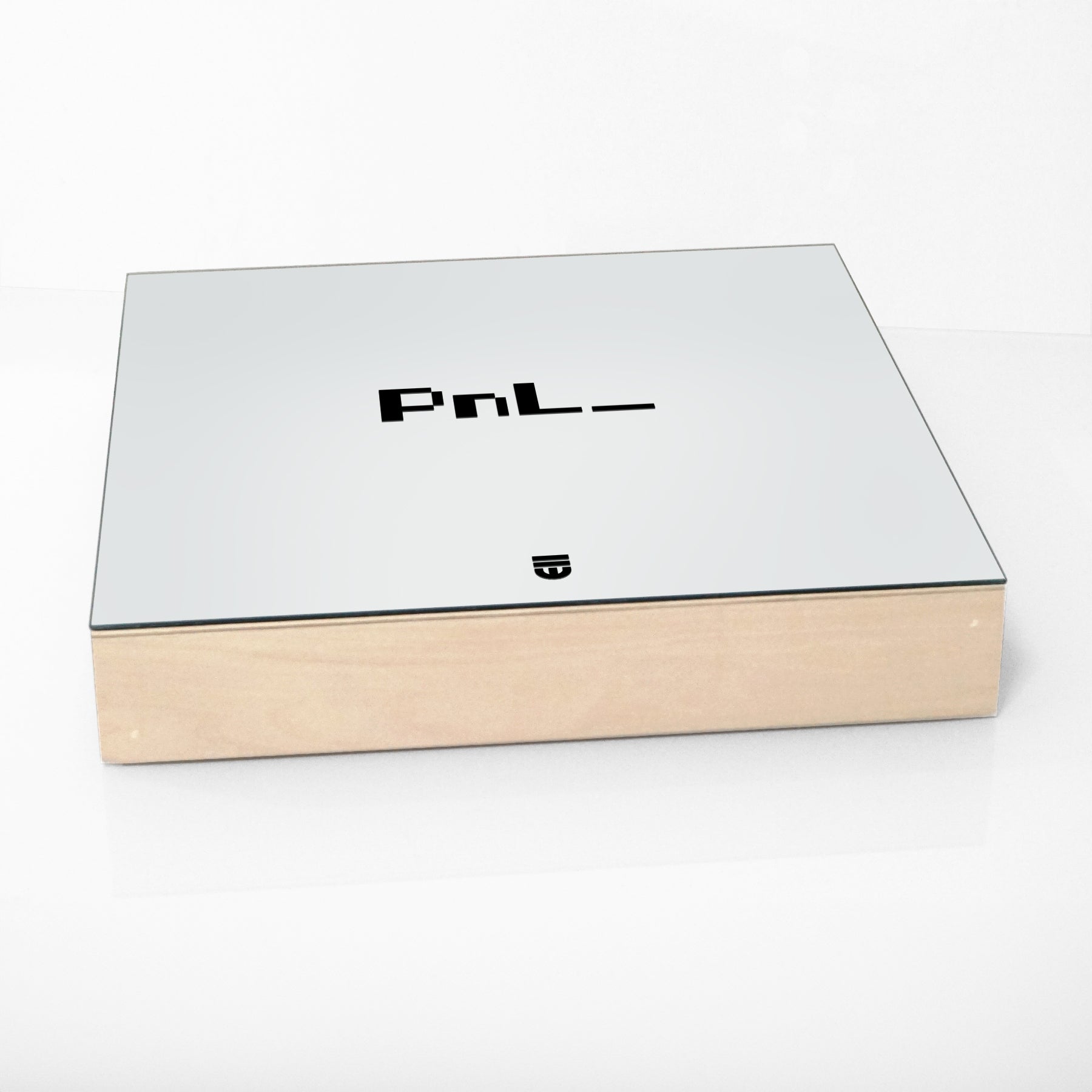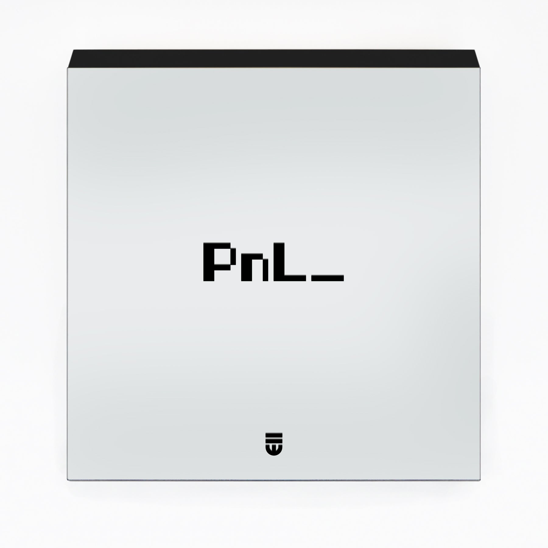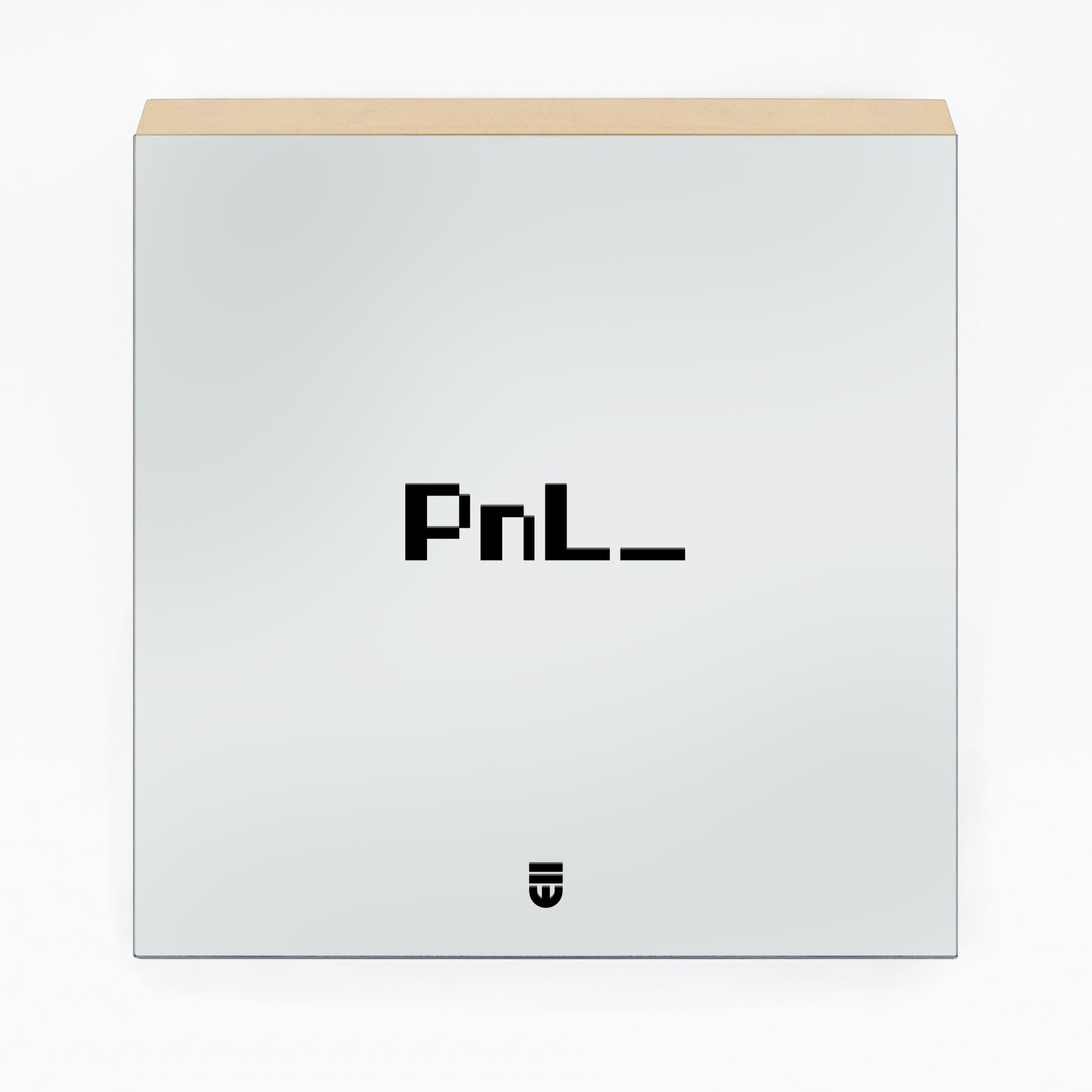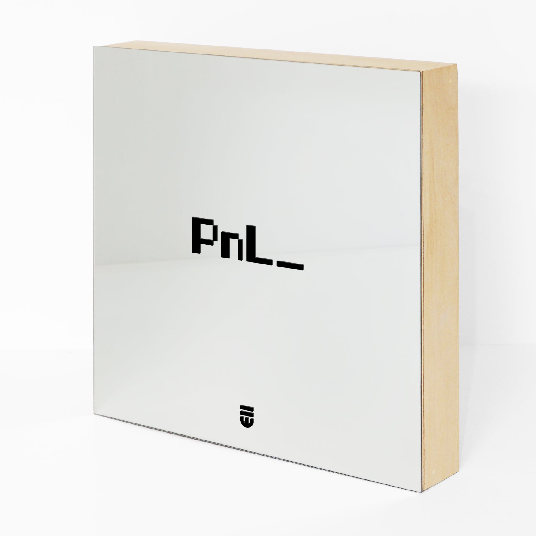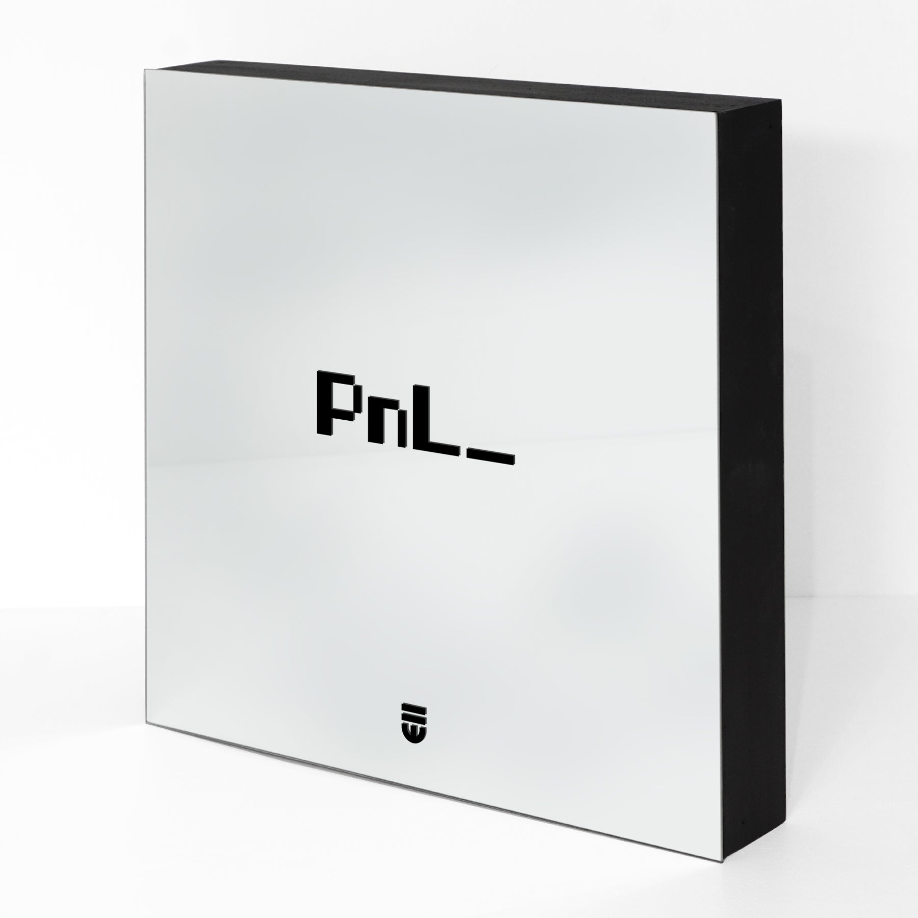 Acrylic and polymer on mirror, mounted on wood panel. Silkscreened using our overprinting technique: multiple layers of paint meticulously applied to create a subtle, tactile depth within the text.